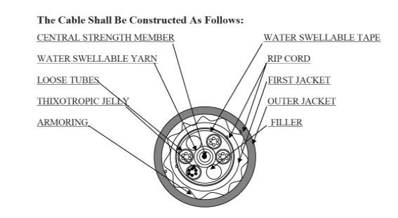 9 – Outer Jacket : جنس روکش بیرونی اکثراً Polyethylene از نوع HDPE می باشد . ضخامت نامی روکش بیرونی 2mm می باشد . این لایه خارجی ترین لایه می باشد و محافظت اصلی از کابل به عهده این کابل می باشد . در بعضی موارد خاص برای کابل های نظامی به جای پلی اتیلن از ترموپلاست ها استفاده می شود .